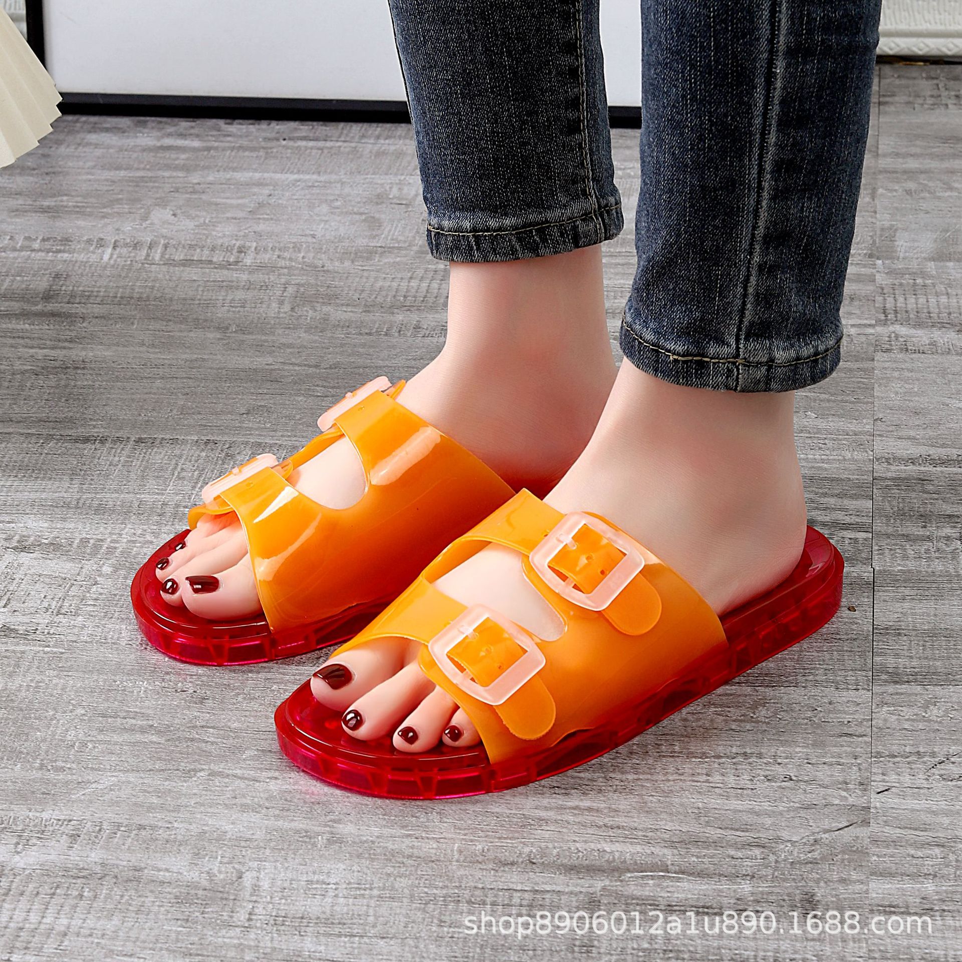 クロスボーダーの夏のサンダルの女性のファッションの新型の双帯の砂浜の外は平底の1字のスリッパのカジュアルな女性の靴を着ます。
