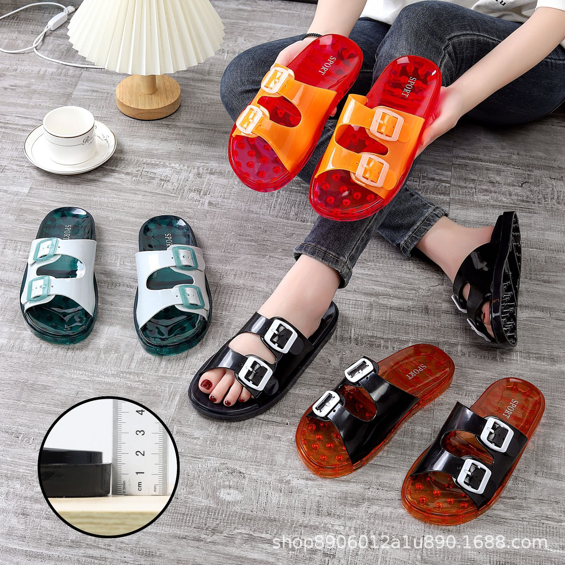 夏の新型女性カジュアルシンプルスリッパの厚い底の一字は色を合わせて高くなります。