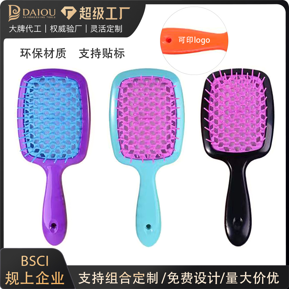 美髪透かし彫りマッサージメッシュ乾湿両用美髪櫛家庭用女性順髪カール櫛ふわふわ造形櫛