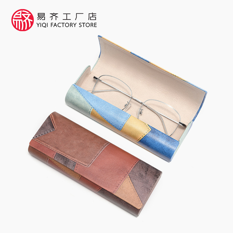 メガネケースの抗圧レトロなつなぎ合わせは色の携帯メガネの収納ケースの高級な手作りの男女の鏡の箱にぶつかってlogoを印刷することができます。