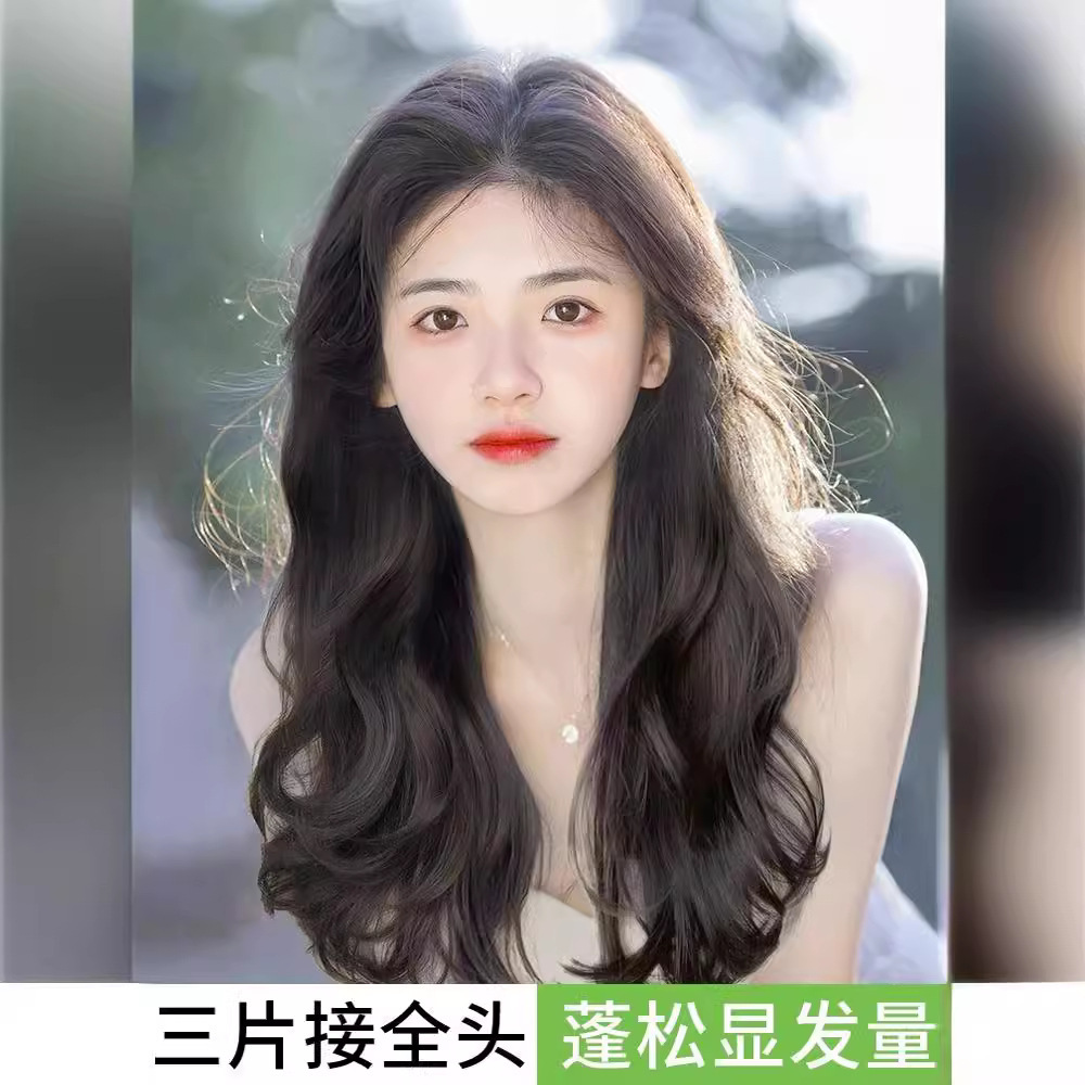 かつらの女性の長い髪のシミュレーションの3枚式は跡のない髪を貼ります。