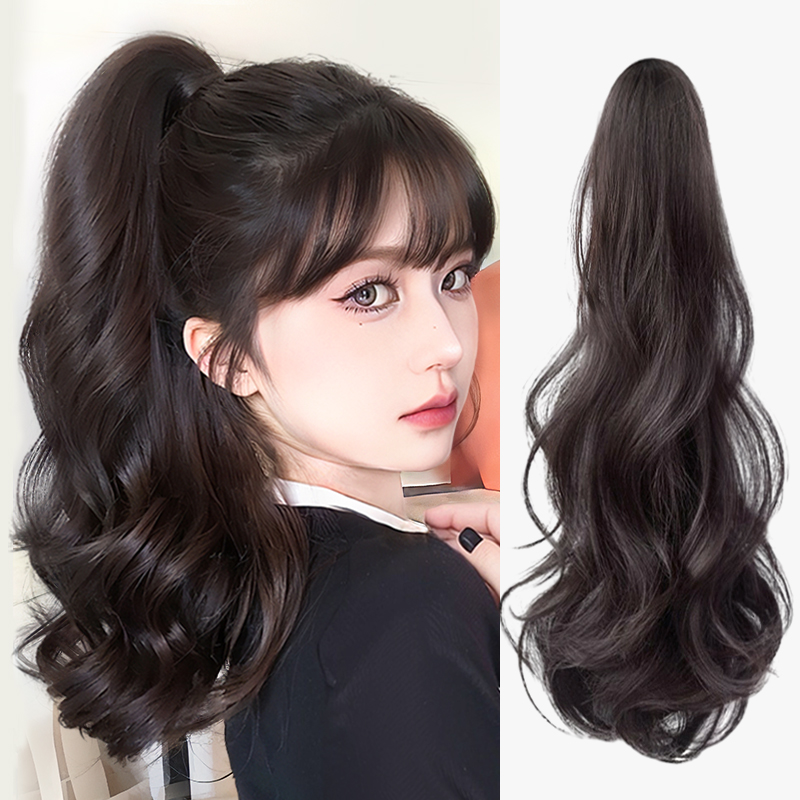 ポニーテールのかつらは女性の秋冬の雰囲気感を挟みます。