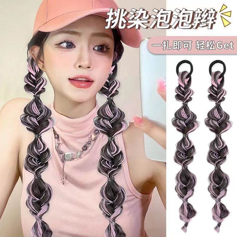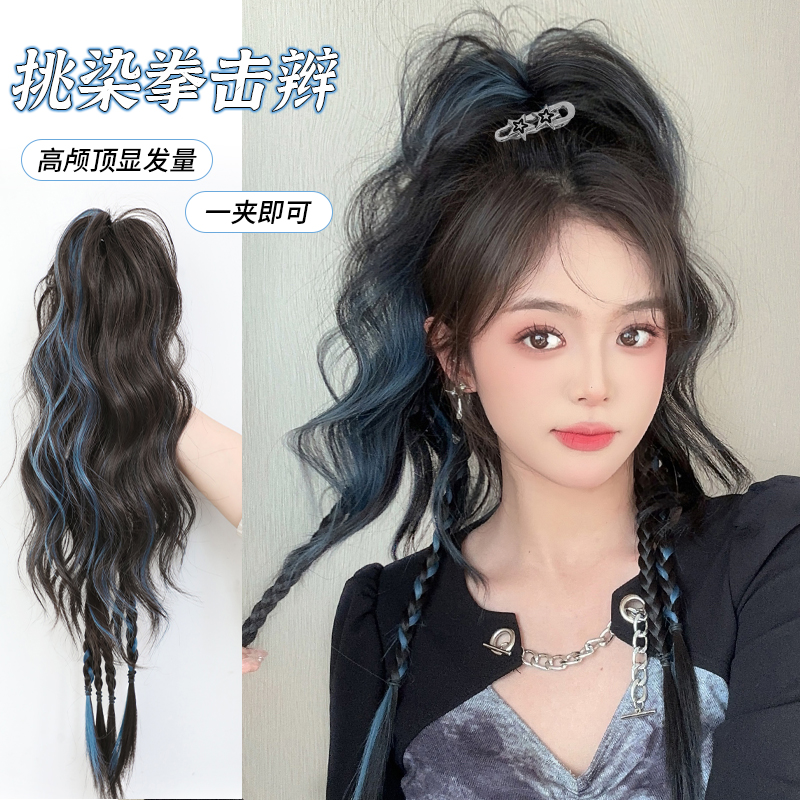 クリップの水の波紋のボクシングのお下げのポニーテールのかつらのお下げの子供のシミュレーションは高いポニーテールを染めます。