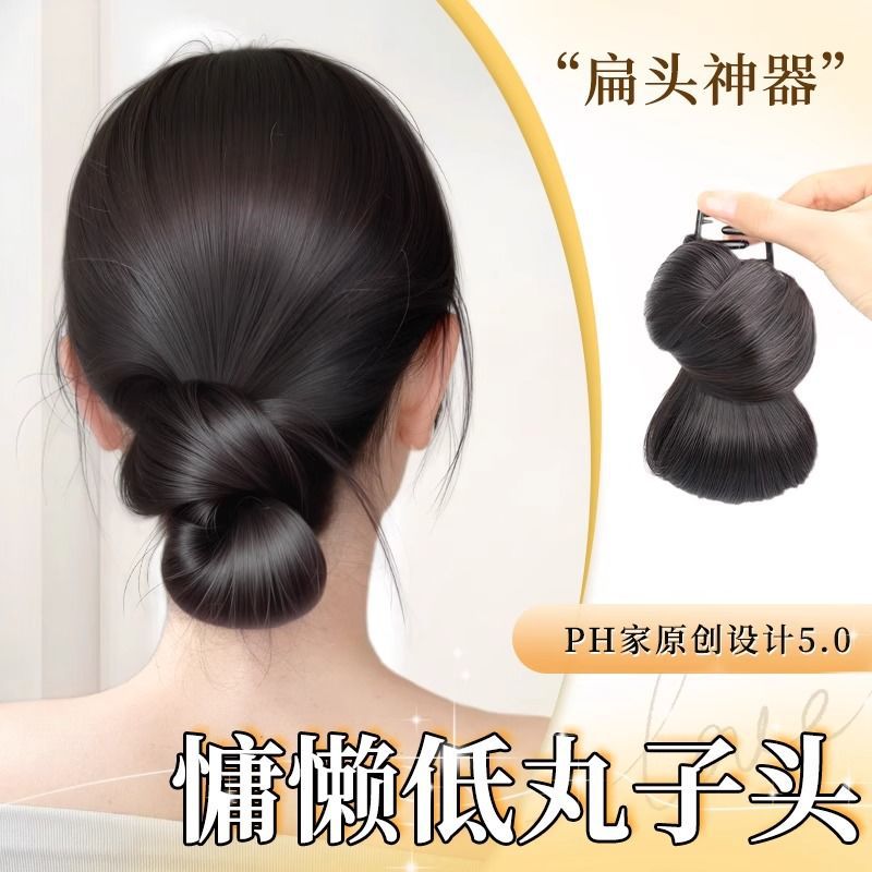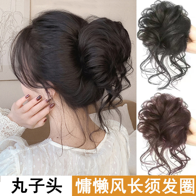 女性用ボールヘッドウィッグ、レイジーグリップクリップ、ヘアバッグスタイル、頭飾り、後頭部の自然なふわふわウィッグ、ヘアバンド