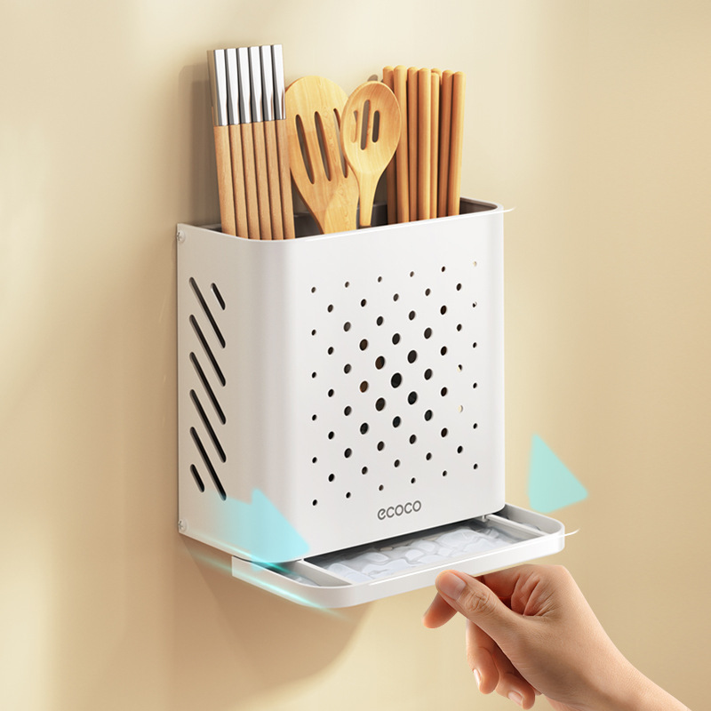 穴あけ不要のアルミ合金箸かご排水保管家庭用高価値スパチュラ収納ラックキッチン箸チューブ壁掛け
