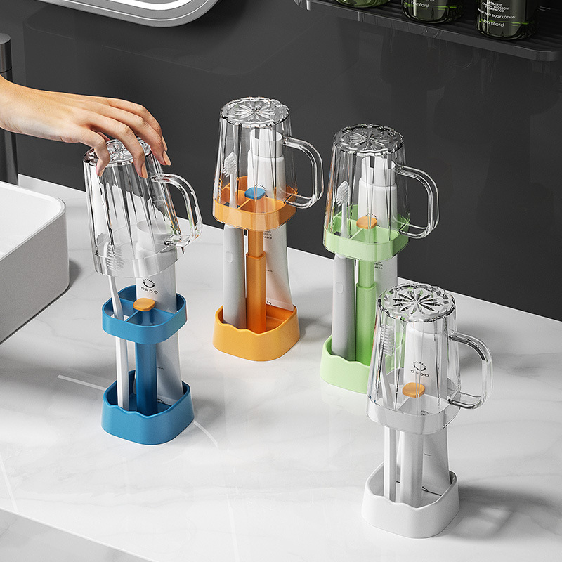 批发漱口杯收纳套浴室牙膏牙刷整理盒家用牙刷架带杯子沥水置物架