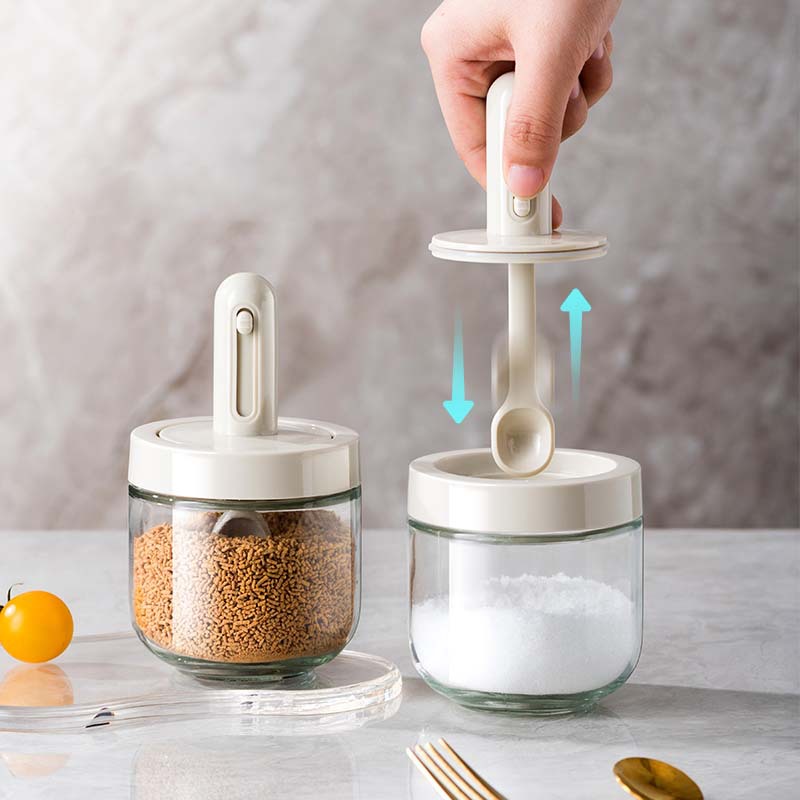 格納式スプーン調味料ボックスキッチン調味料ボックス密封防湿砂糖と塩瓶調味料包装保存調味料瓶