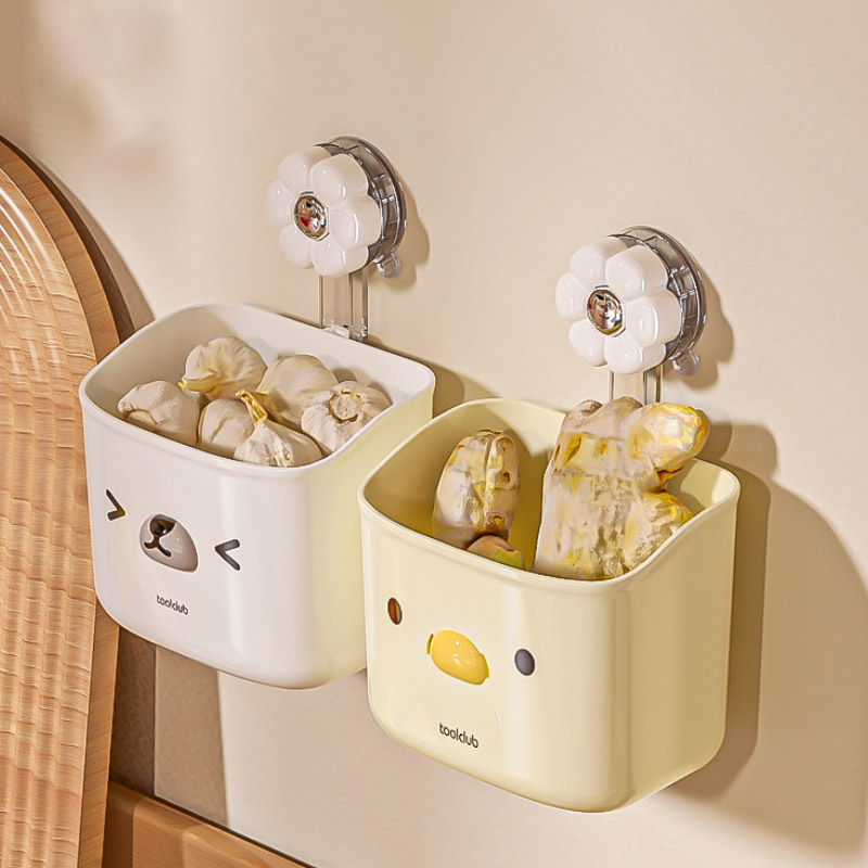 ネギのショウガのニンニクの吸盤はかごの家庭用の台所の物置棚の壁掛け式の穴を開けないでニンニクのショウガのショウガの小さいかごを収納します。