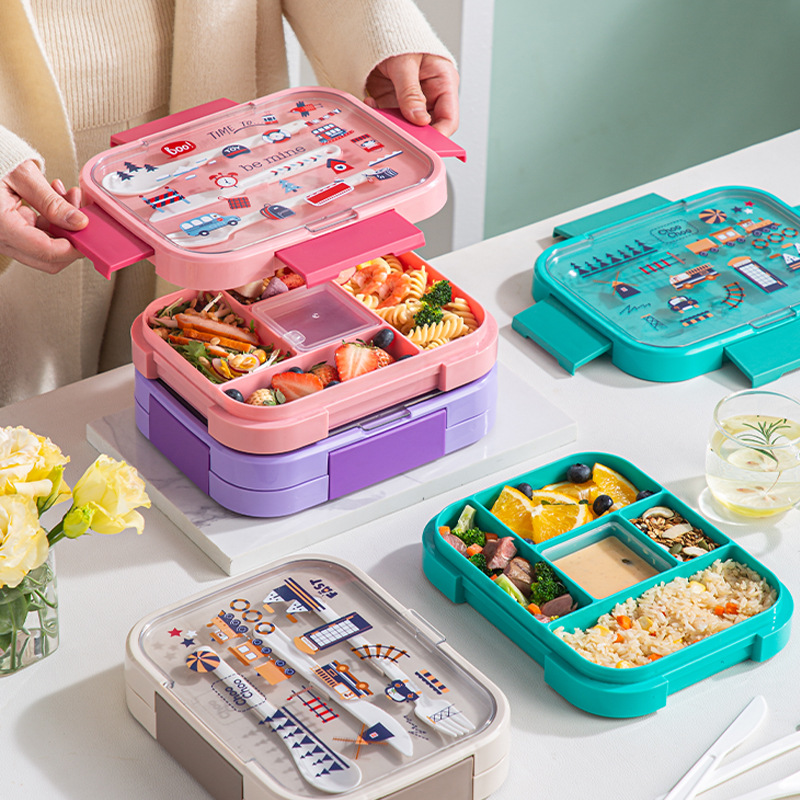 大容量アニメ分格プラスチック多格弁当箱果物軽食学生昼食電子レンジ加熱弁当箱