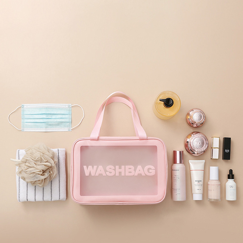 旅行用スキンケア製品収納袋透明つや消し大容量ジッパー分離トイレタリーバッグ化粧品袋ポータブルハンドバッグ