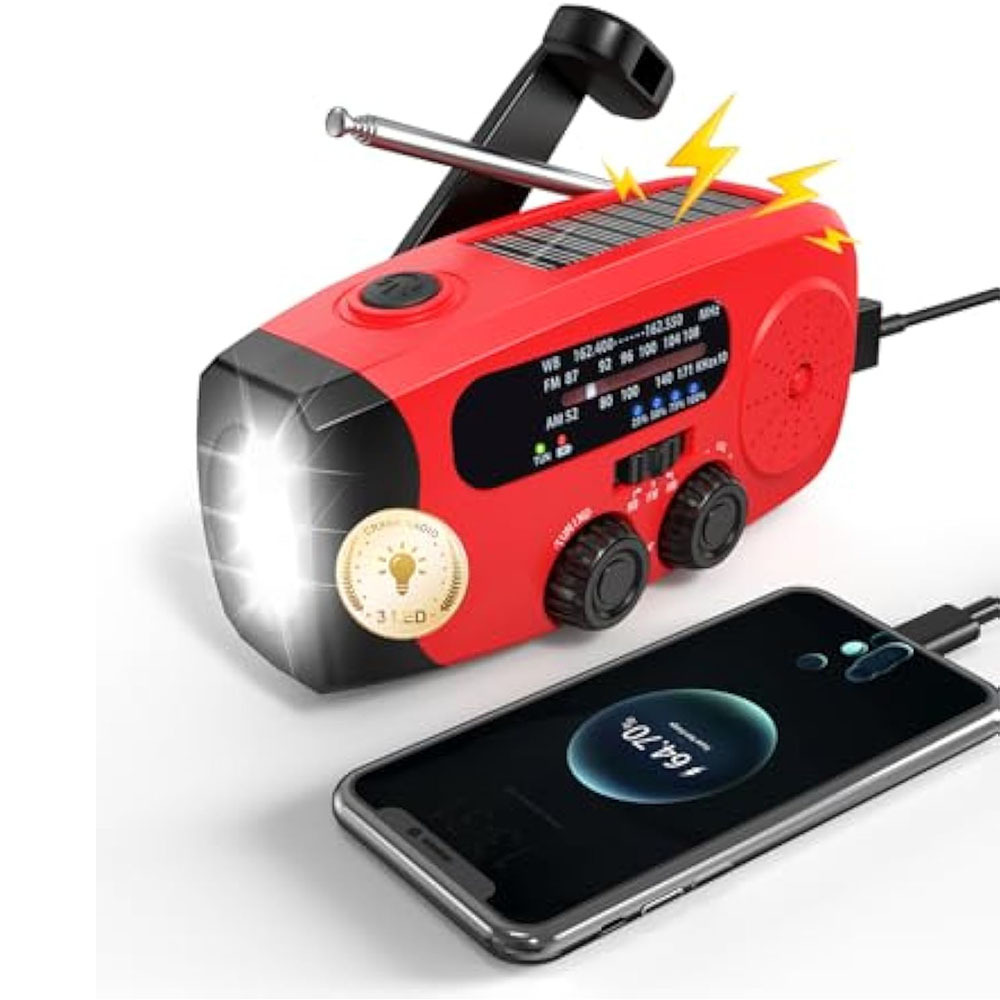 アマゾン6000mahポータブル家庭緊急太陽光手動発電多機能fm/noaaラジオ