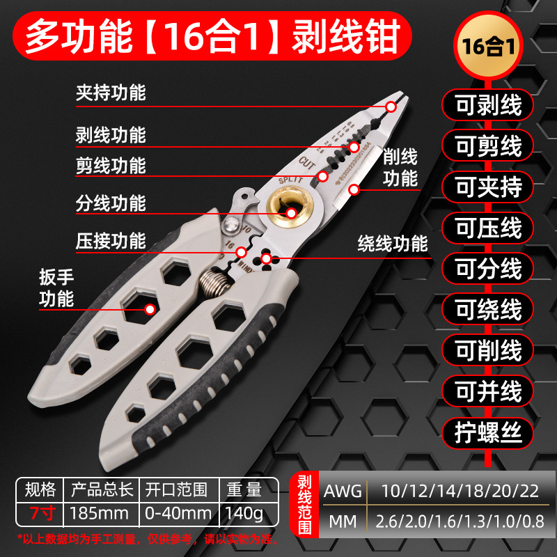 工場直送16in1多機能ワイヤーストリッパー、分線ペンチ、巻線・剪断・被覆剥き・圧着ペンチ、森盛