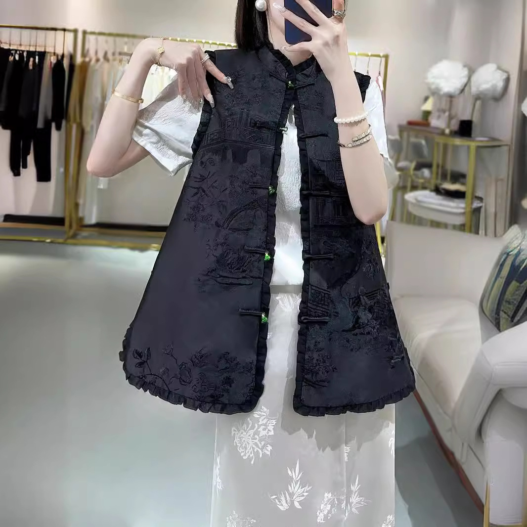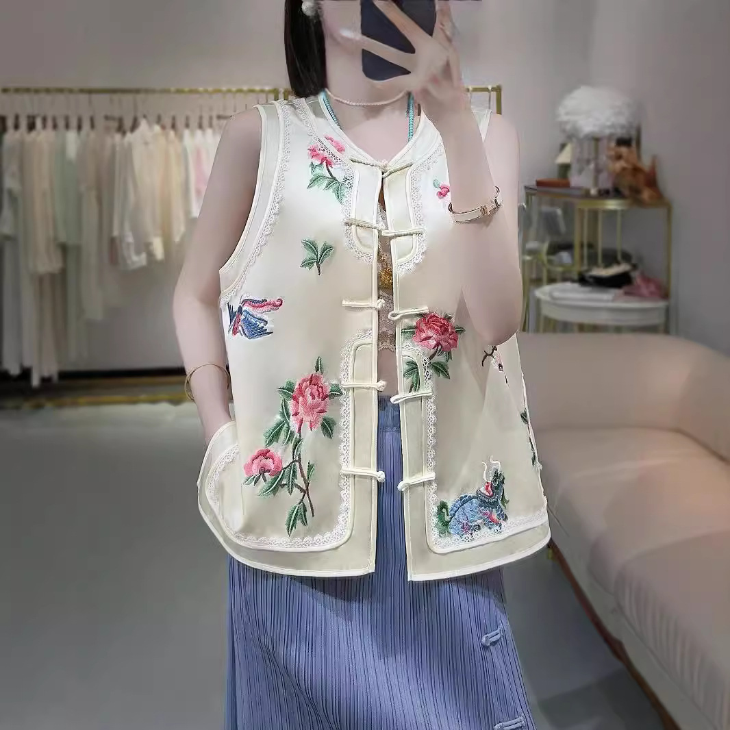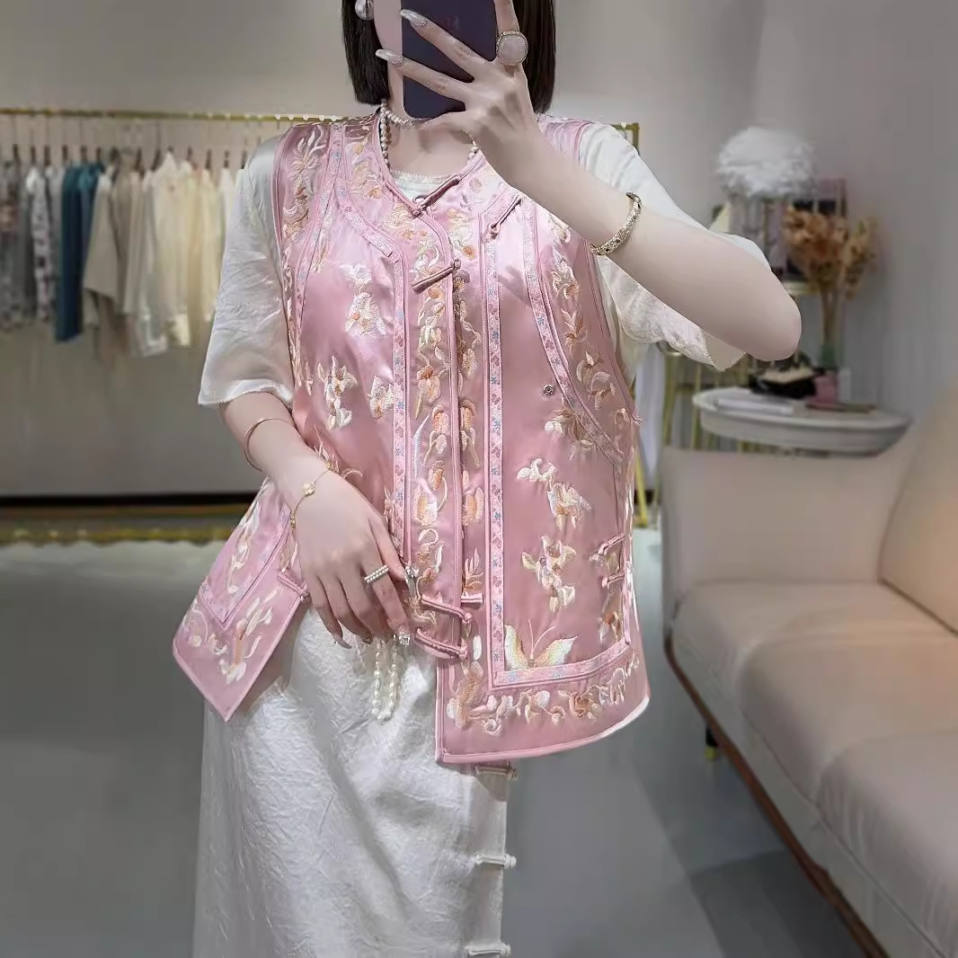 2024夏の新型ファッション新中国式重工満刺繍対襟酢酸小馬甲
