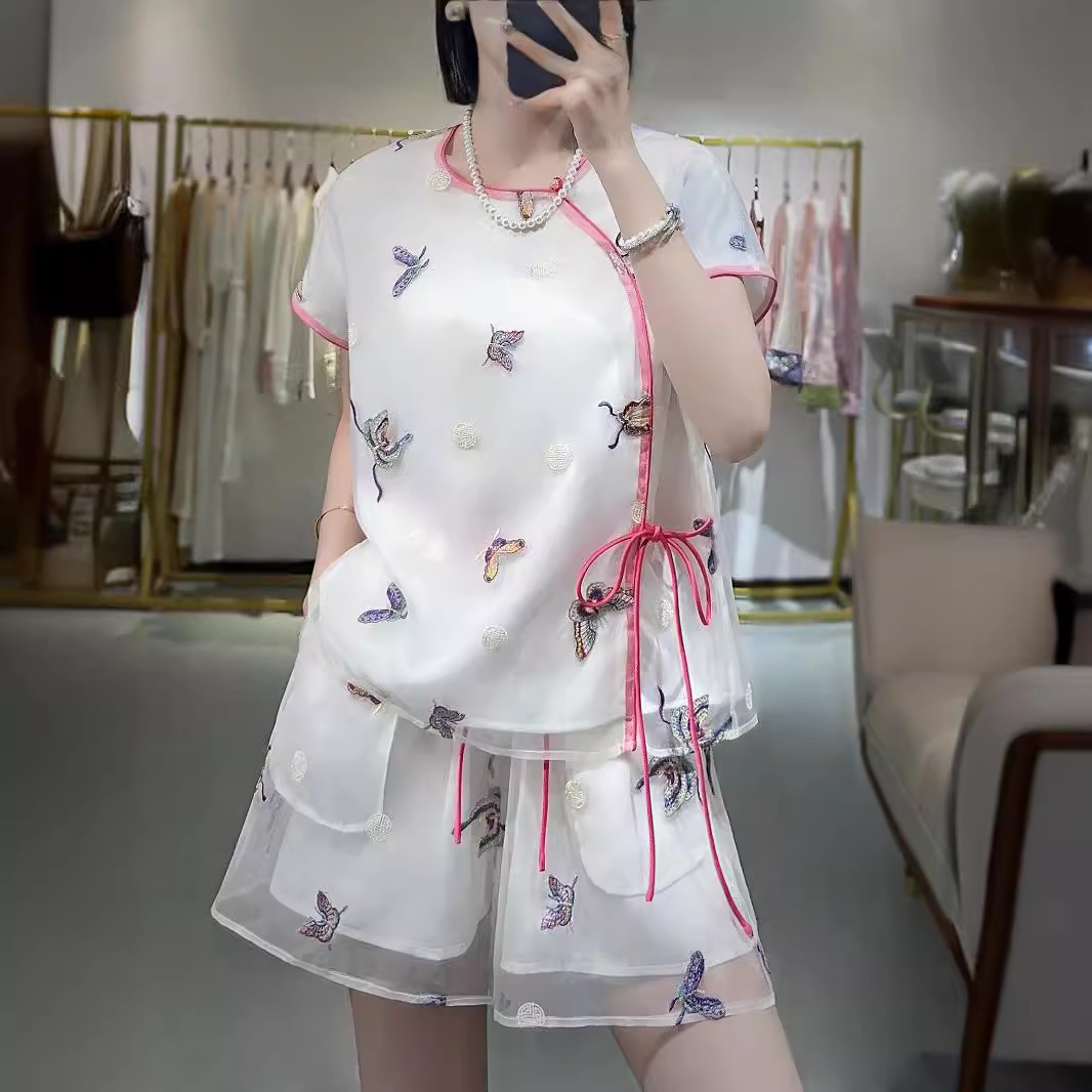 2024夏の新型蘭汐ファッション新中国式酢酸ジャカード刺繍2点セット