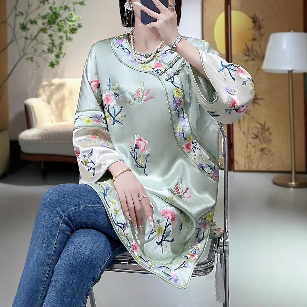 2024新中国式刺繍唐装ゆるい国風丸襟上着ジャケット9402