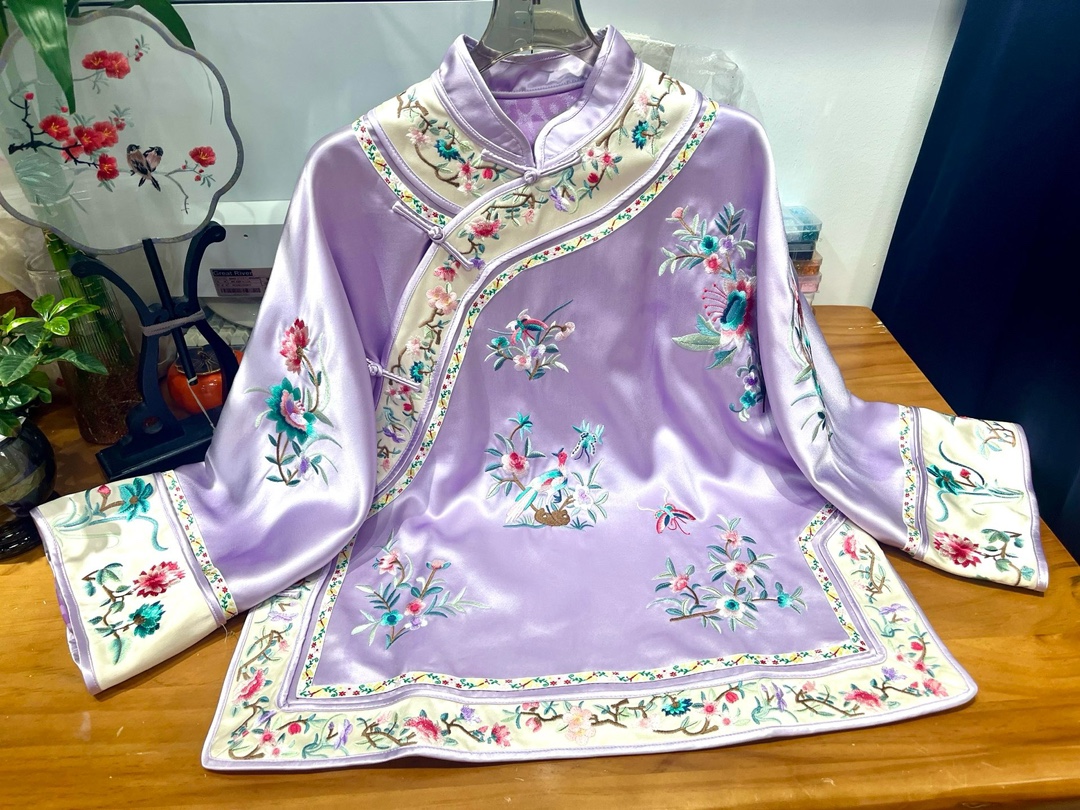 蘭汐新型ファッション新中国式重ポンド酢酸花鳥満刺繍清宮格服コート