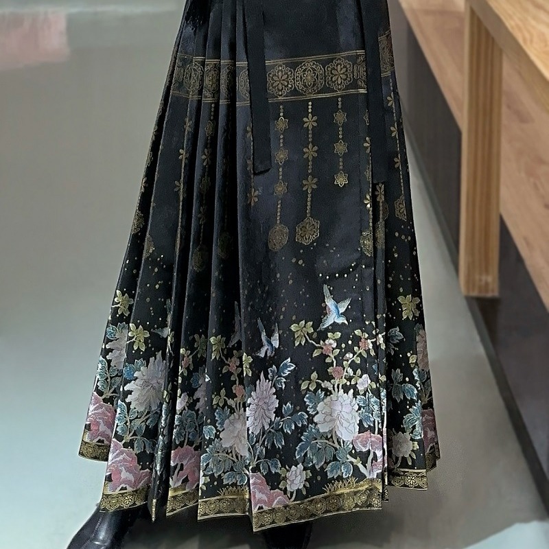 2306新中国式日常百合蝶恋花ジャカード錦織馬面スカート