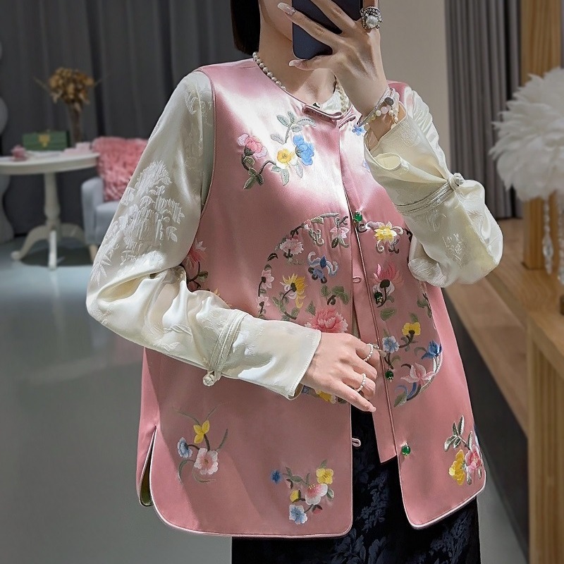 蘭汐の新型中国式の錦鶏の刺繍の対襟の酢酸の丸首の小さい馬の甲