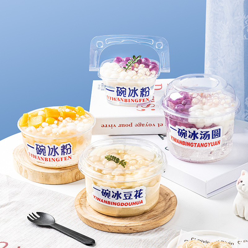 ネット赤氷粉専用ボウル果物すくい包装箱円形蓋付き商用露店氷湯円使い捨てデザートボウル