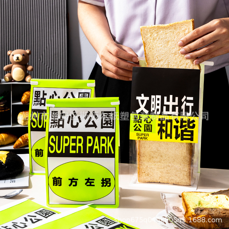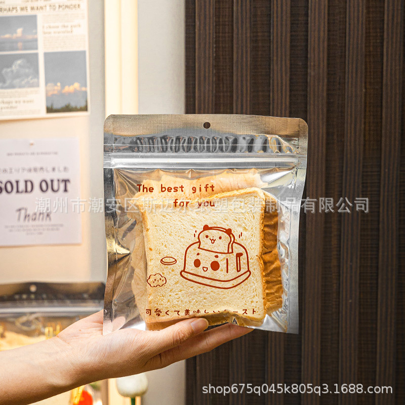 新商品創意トースト袋包装袋ネット赤透明開窓カーリング袋菓子トースト食品自封袋