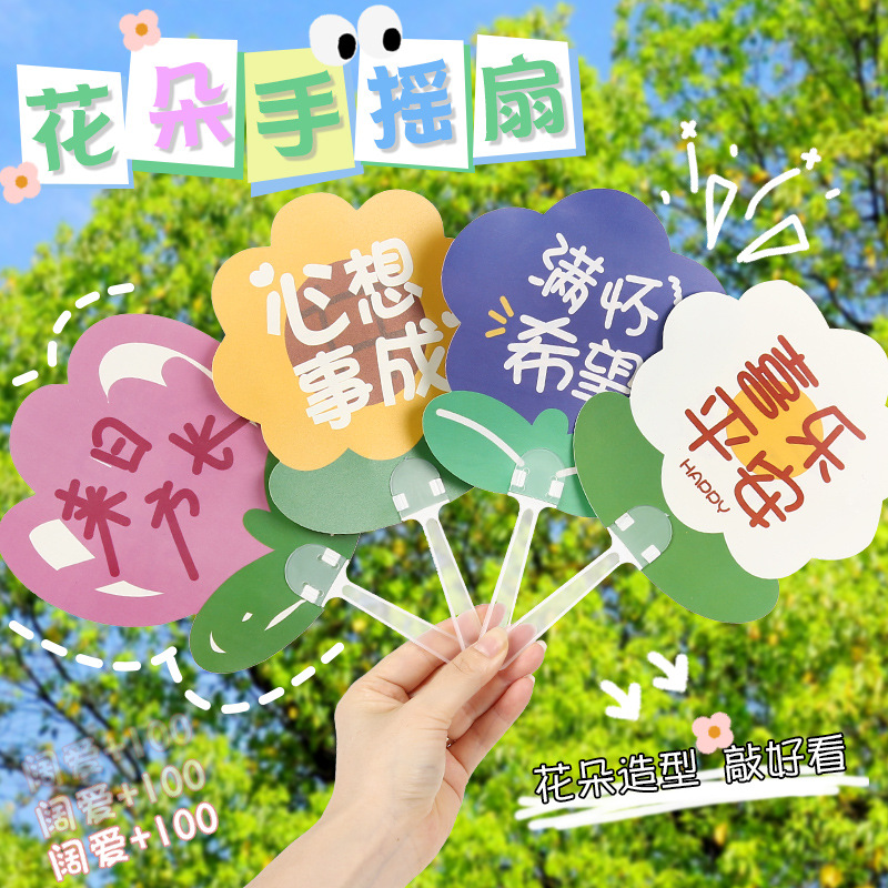 創意的な花の扇子のかわいい漫画の子供の夏の小さい扇子の花が咲いています。