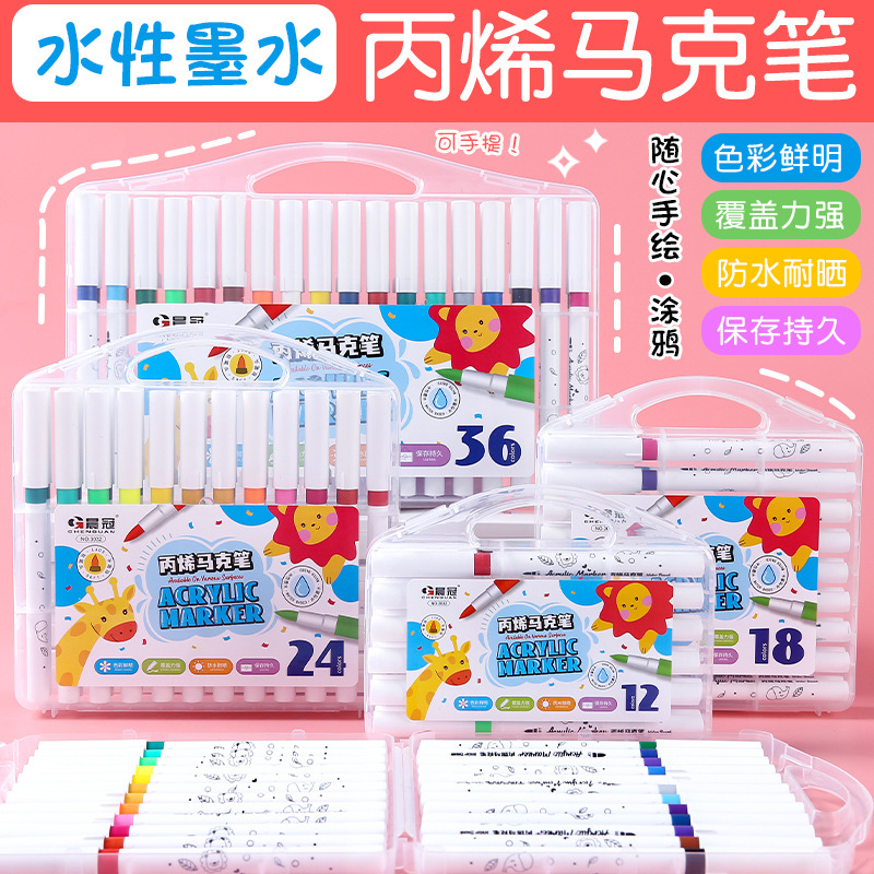 アクリルマークペン学生美術専用水性マークペン子供防水不浸透カラーブラシ水洗いカラーペン
