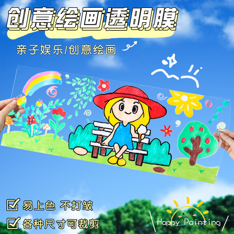 幼稚園の環創透明絵画フィルムガラス紙子供diy手作り絵画pvc透明フィルムフィルム絵画