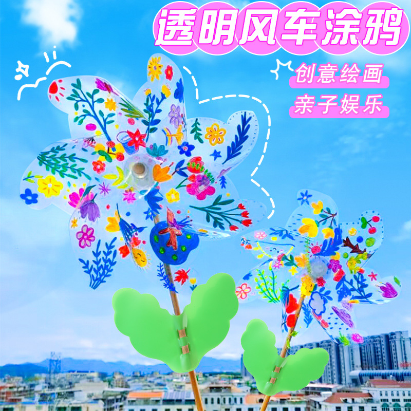 子供手作りpvc透明大風車幼稚園diy手作り落書きカラフル空白風車六一
