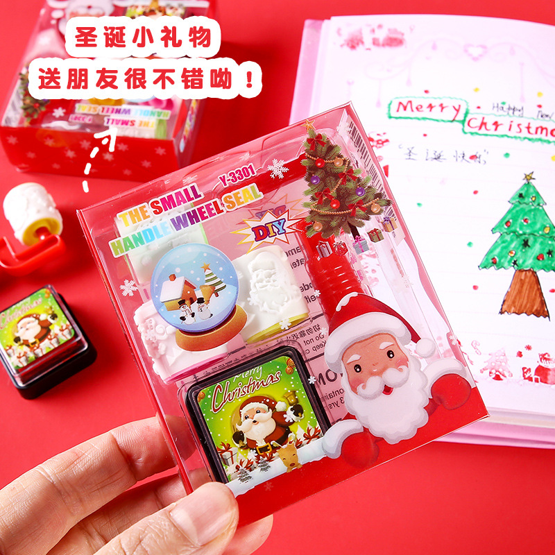 クリスマスのプレゼントの箱にクリスマスの子供の印の泥のローラーのスタンプ幼稚園の学生の賞品の文房具のセットの贈り物を印刷します。