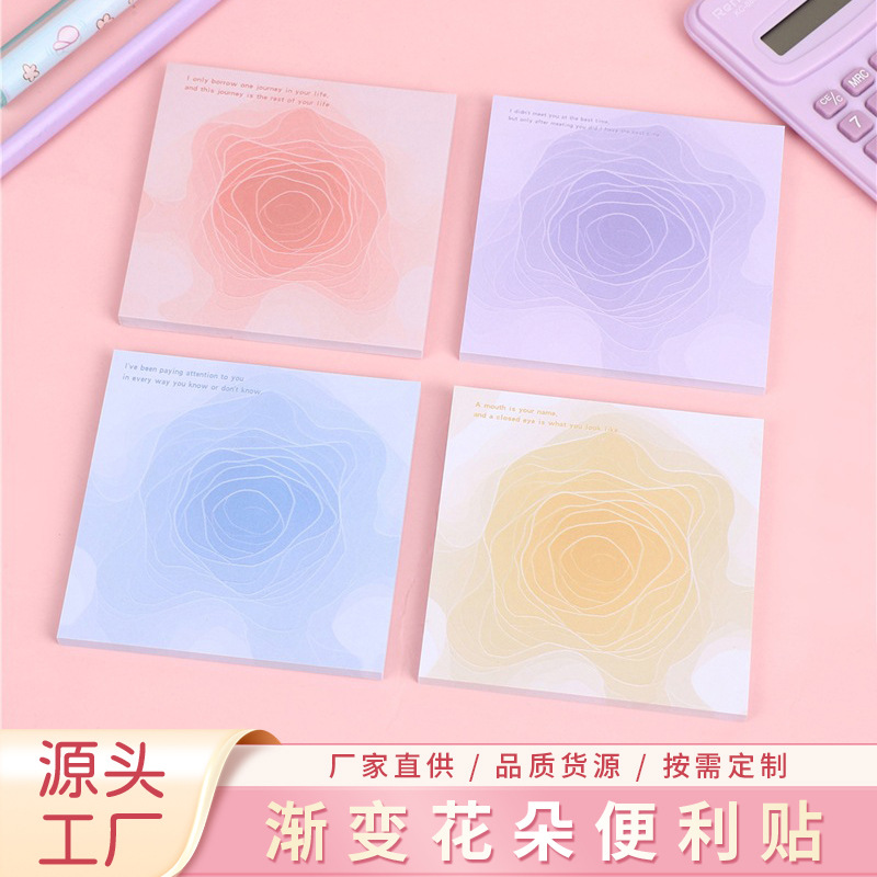 グラデーションフラワー付箋紙、インスタ風メッセージ、粘着性あり、何度も剥がせるステッカー、手帳用、剥がせる付箋