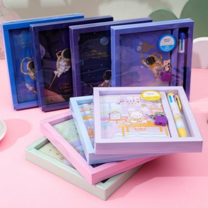 かわいいアニメの手帳セットロック付きノート多色筆セット小学生の手帳セット