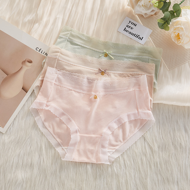 下着女性の純粋な綿股ミッドウエストシームレスショーツかわいい女の子三角頭通気性薄いガーリースタイル