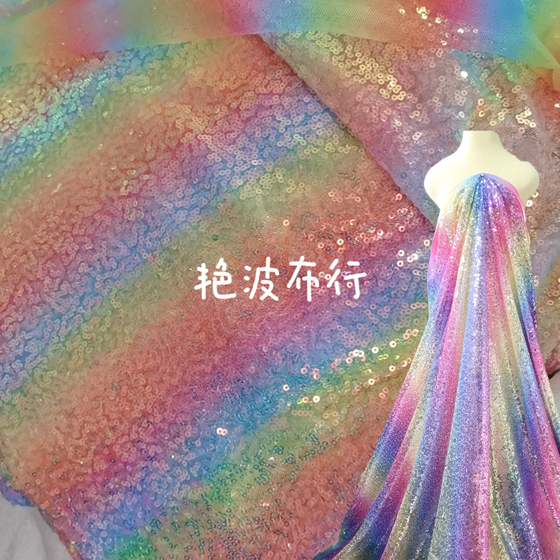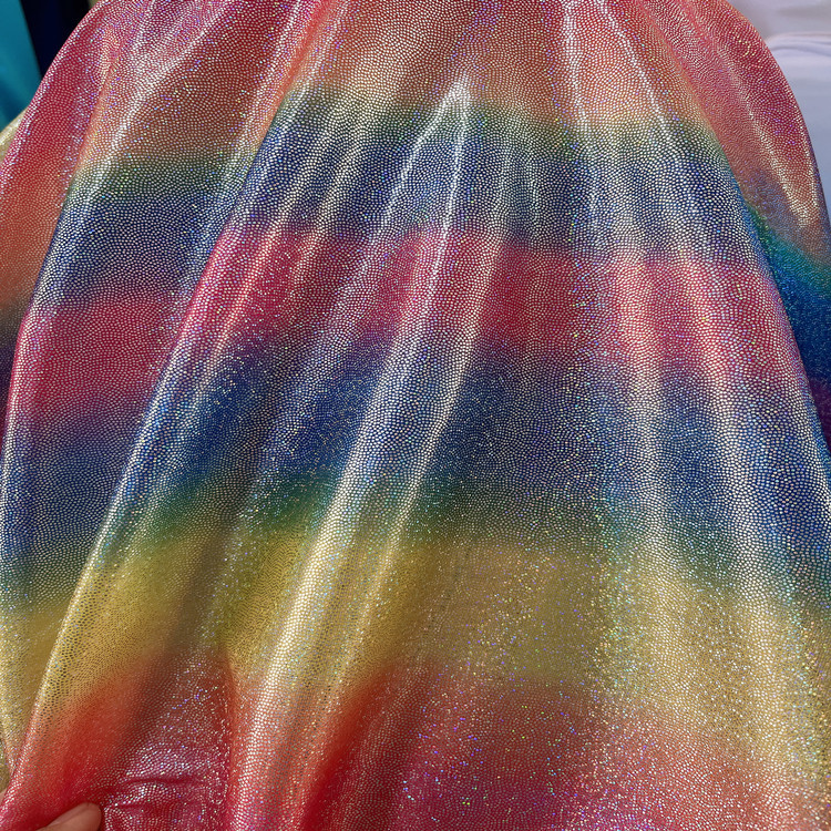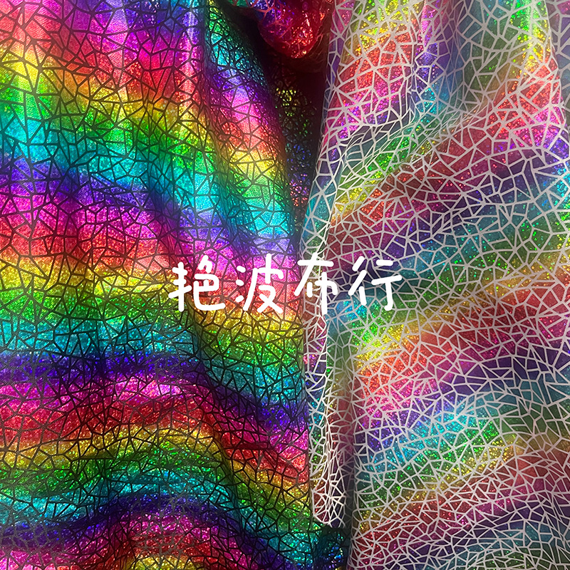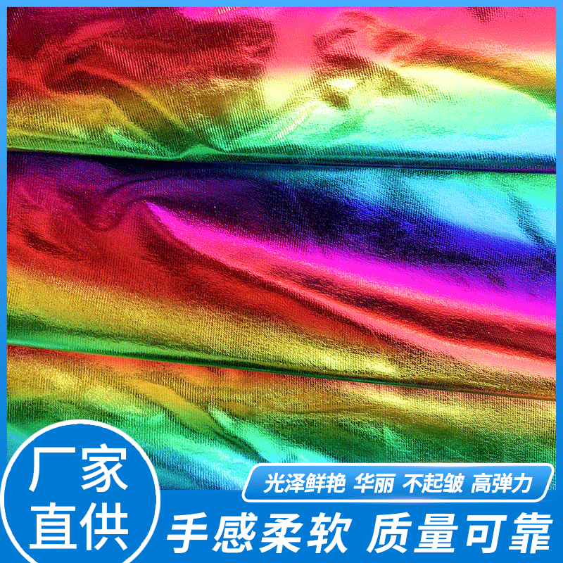スパンデックス弾力レーザー箔押し生地七彩満版グラデーション幻彩生地演出服工芸品装飾卸売り