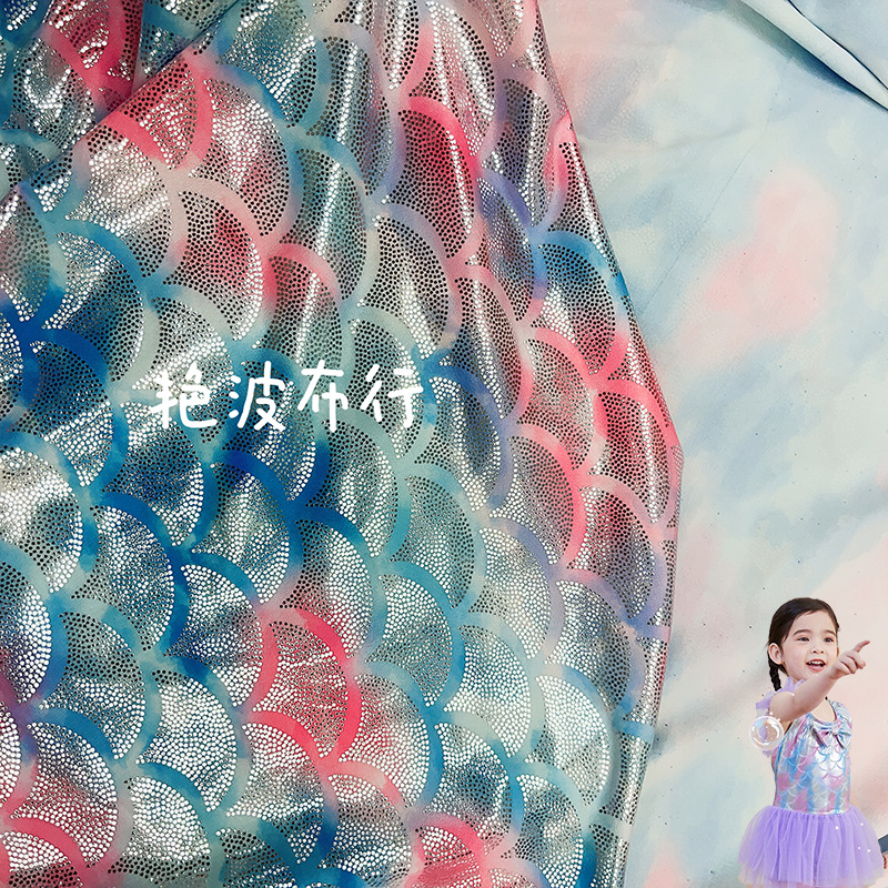箔押しレーザー魚鱗錦アンモニア生地弾力小魚鱗幻彩人魚水着服装生地