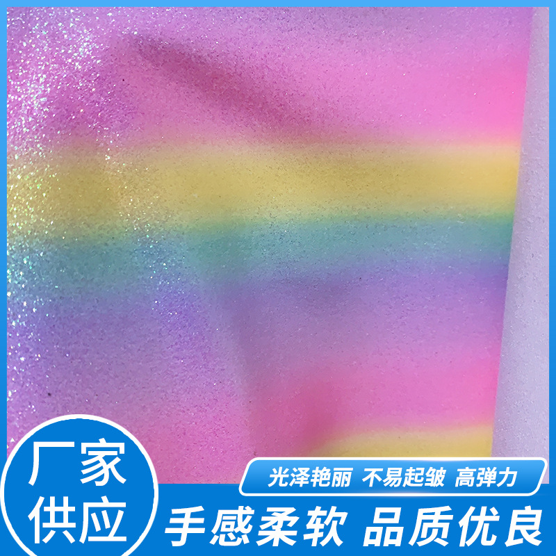 レインボーグラデーショングリッターpuレザープリント生地バッグハンドバッグレザーカラフル革生地
