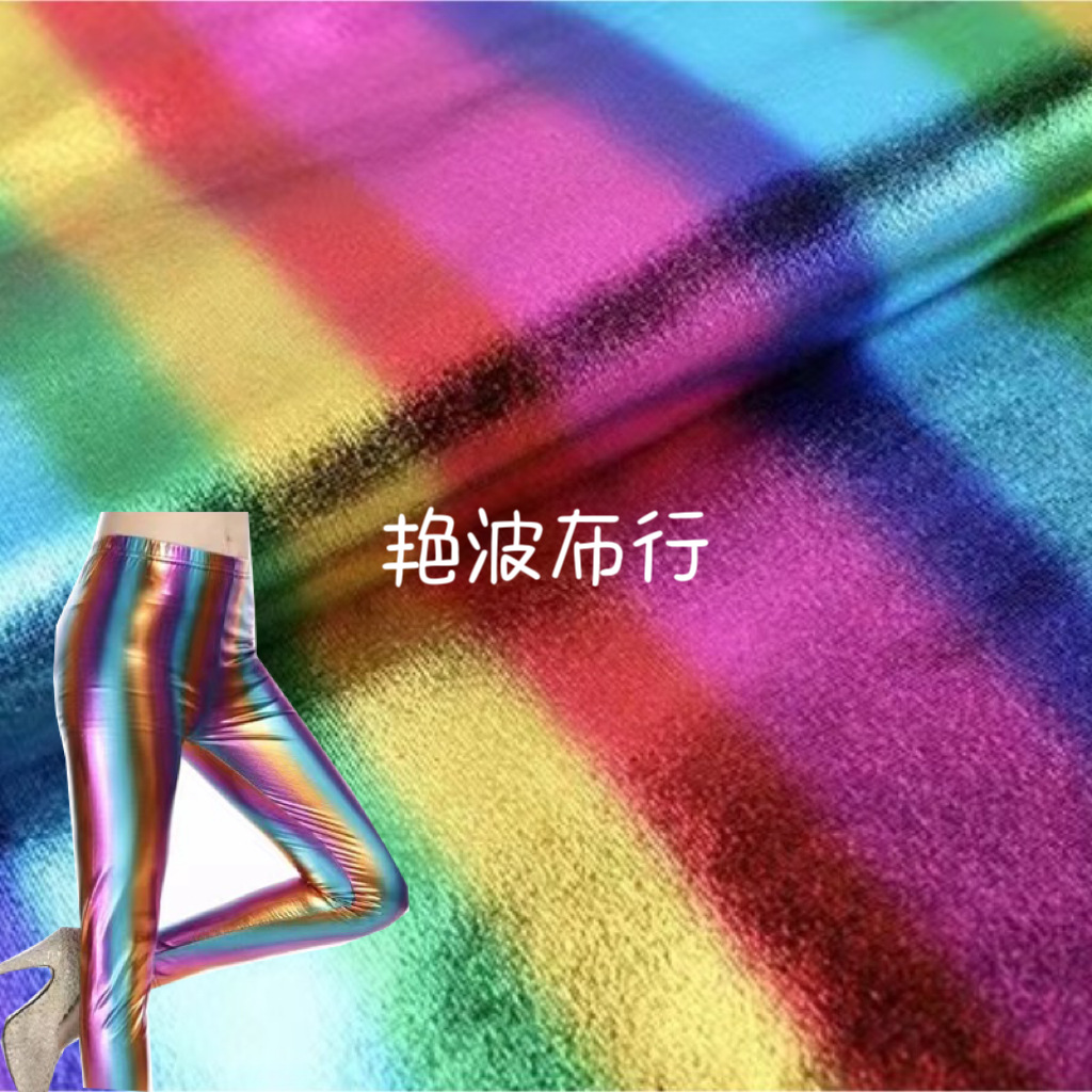 カラフルなストライプの箔押し生地グラデーション幻彩コンピュータ版レーザー箔押し生地舞台演出服装生地