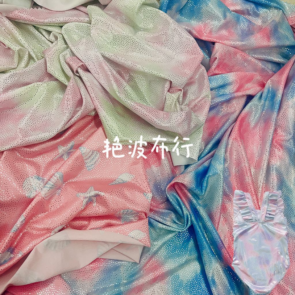 四面弾箔押し大魚鱗生地幻彩レーザー箔押し美人水着ワンピース生地