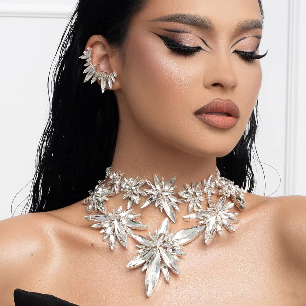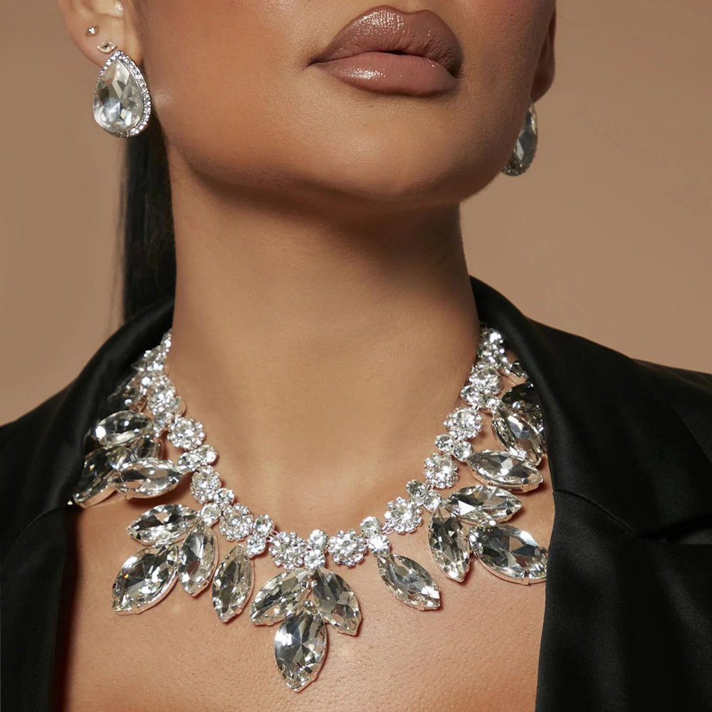 新しい誇張水滴形ネックレスセット個性的なパーティーにドリルネックレスのイヤリングセットを入れます。