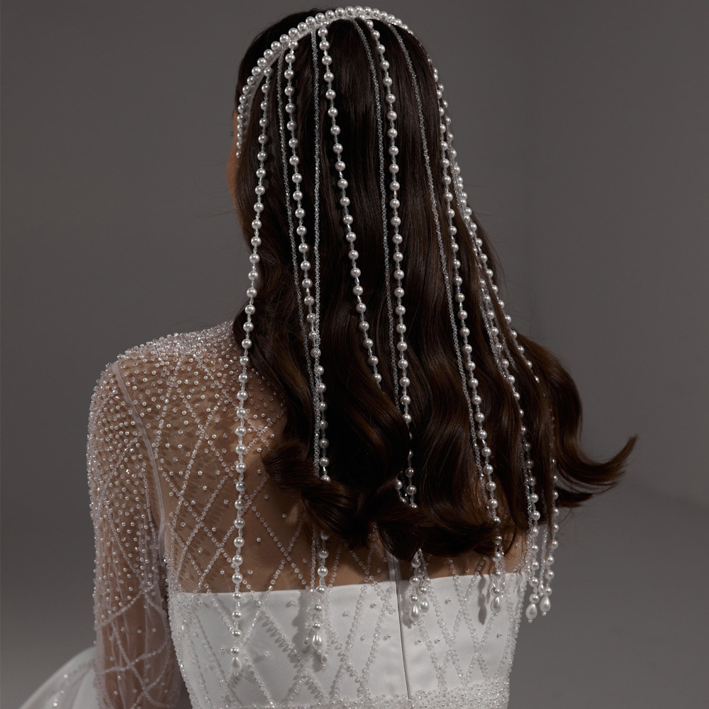 欧米の人気真珠のカチューシャの高い首のトップの高級感の花嫁のフリンジの髪飾りのペンダントの女性のヘッドウェア