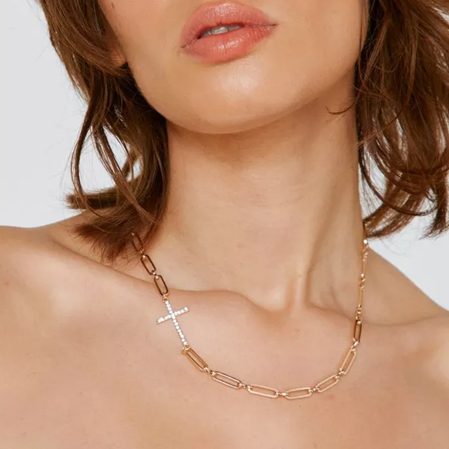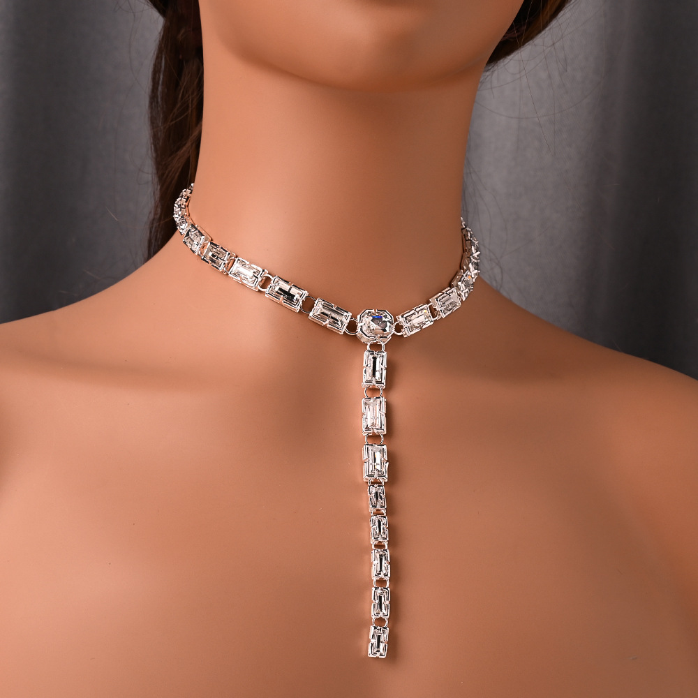 新しいスクエアネックレスライト高級多用途ラインストーンネックレス鎖骨チェーン義烏ネックレス卸売ネックレス