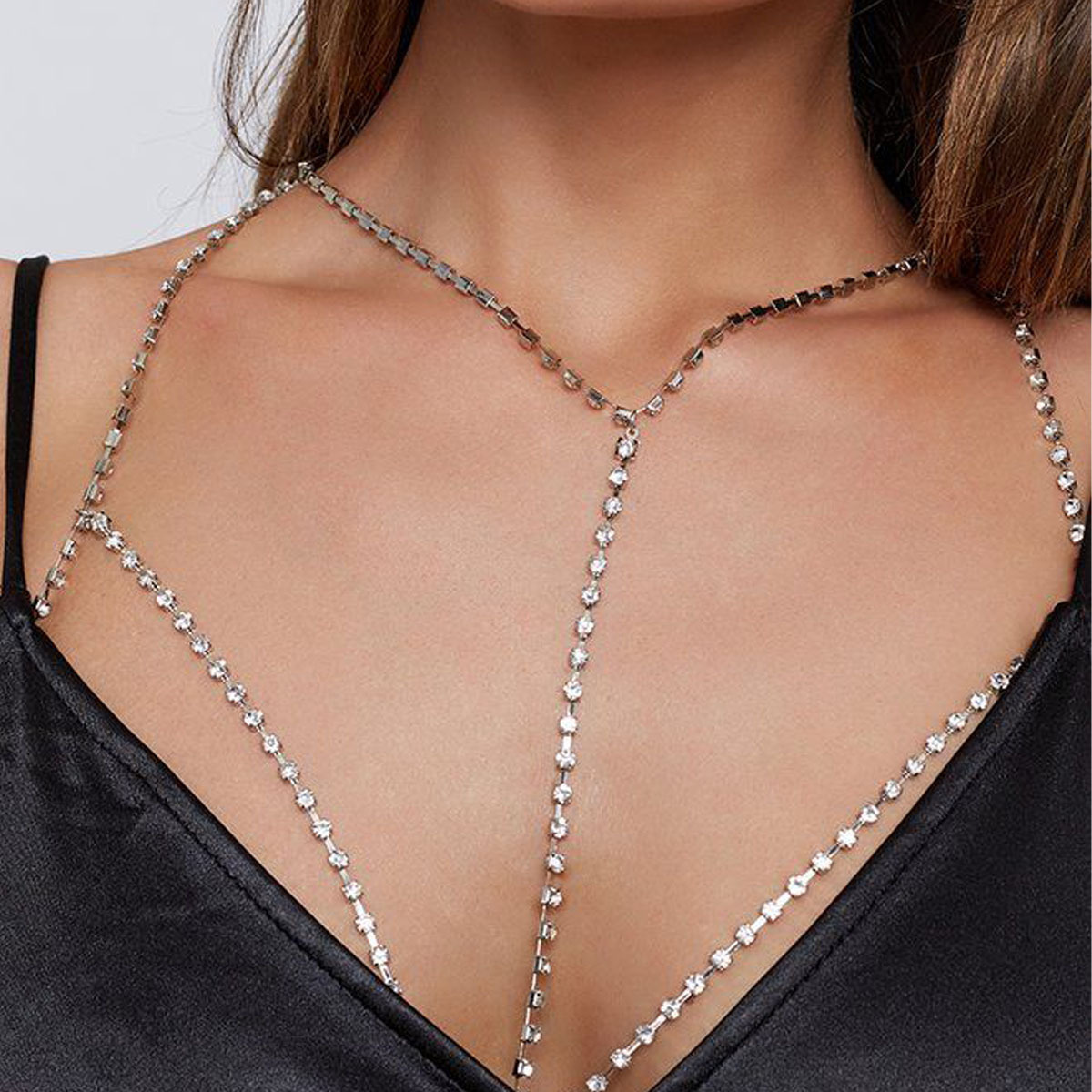 欧米の簡単なドリルの胸のチェーンのビキニのブラジャーの装飾のゴシック式の美体の爪のチェーンのネックレスのchestチェーン