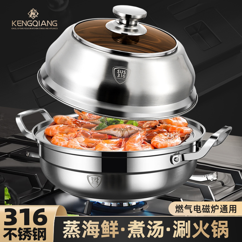 海鮮蒸し器316ステンレス家庭用蒸煮煮込み鍋蒸し海鮮蒸し器商用サウナ鶏鍋鍋鍋