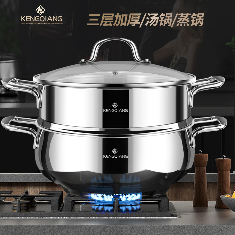 チョックメン Zhuode Ming 蒸し器 316 家庭用増粘二層蒸し器蒸しオールインワン鍋電磁調理器スープ鍋