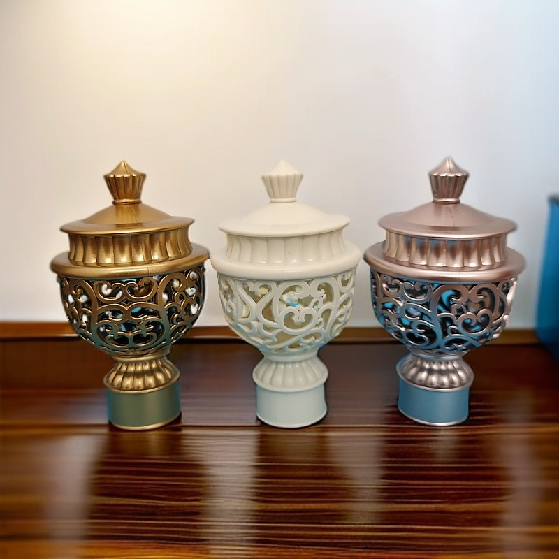 カーテンのローマの竿の装飾の頭の2頭のプラグのカーテンの部品の補助材料は口のカバーのカーテンの竿の装飾のヘッドのプラスチックを密封します。
