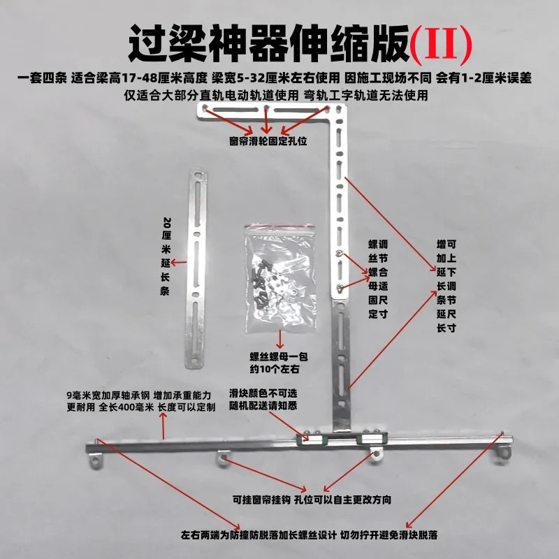 カーテン軌道過梁ブラケットバルコニー電動軌道包梁神器カーテン直軌道ビーム部品伸縮可能