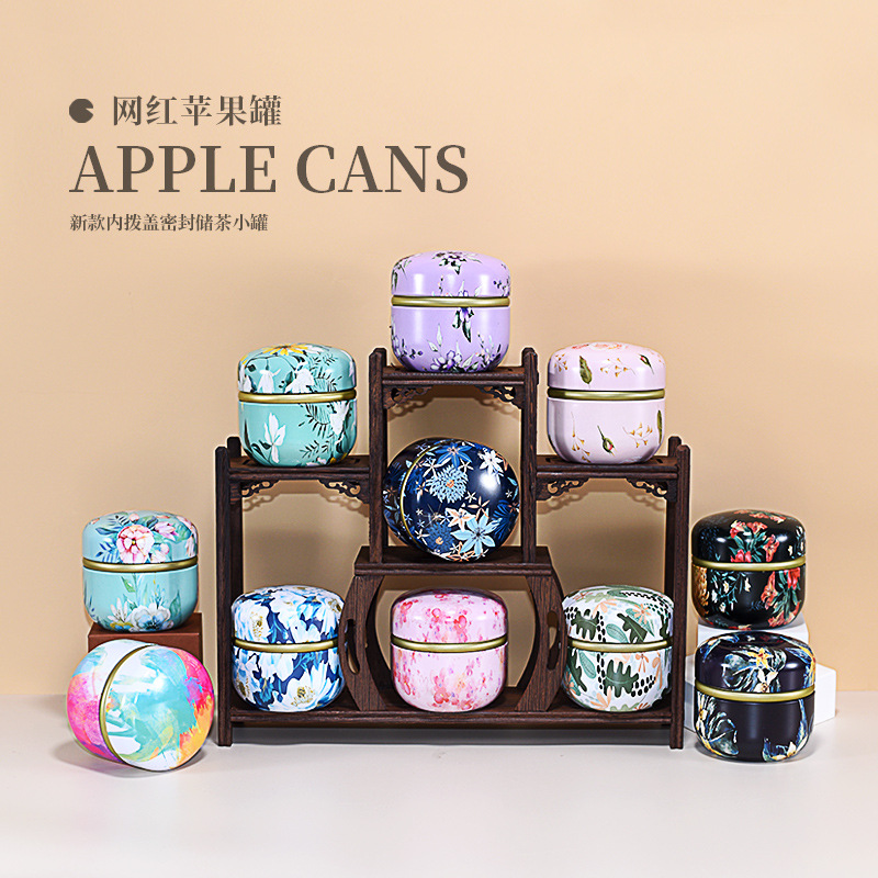 茶葉缶ブリキ家庭用密封茶葉包装箱出張で日本式花茶小鉄缶円形を持ち歩く