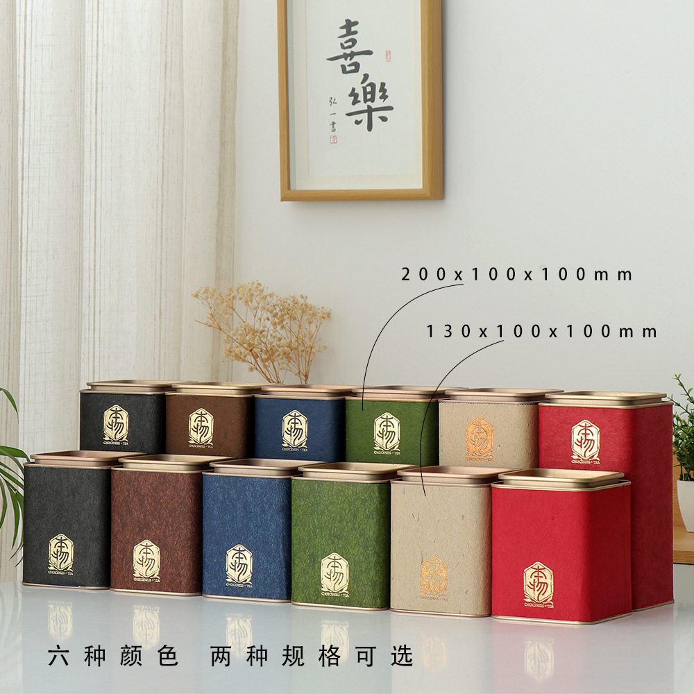 汎用純色ブリキ茶葉缶鉄箱緑茶茶茶葉包装箱鉄缶茶缶角缶小ロット空箱