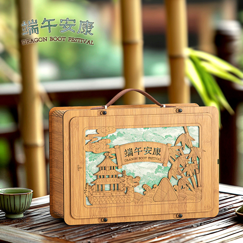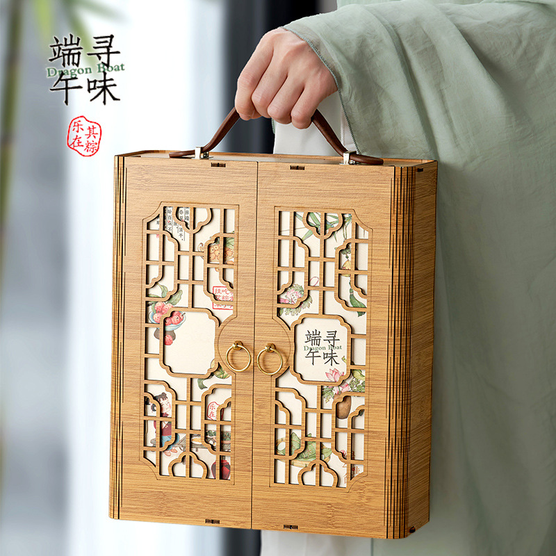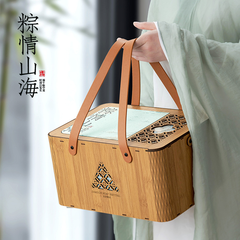 2025 ハイエンド端午節ギフトボックス団子包装箱空箱クリエイティブパイン木製ポータブルギフトボックス団子ギフトボックス