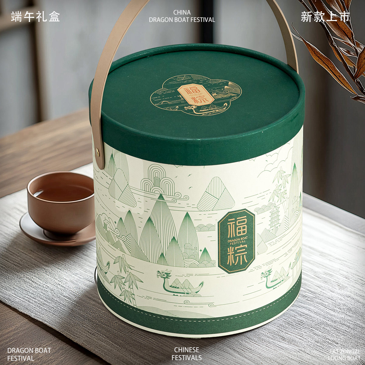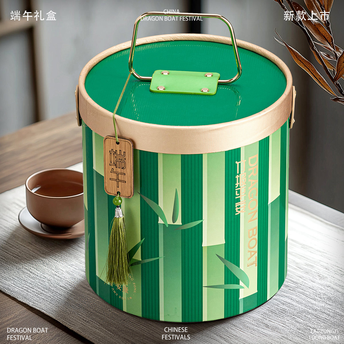2025 端午節ギフトボックス団子包装箱クリエイティブラウンド紙缶ポータブル包装袋ギフト空箱カスタムロゴ