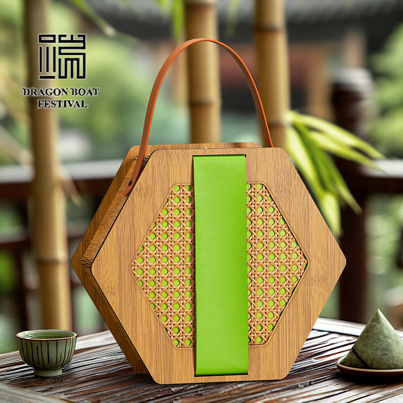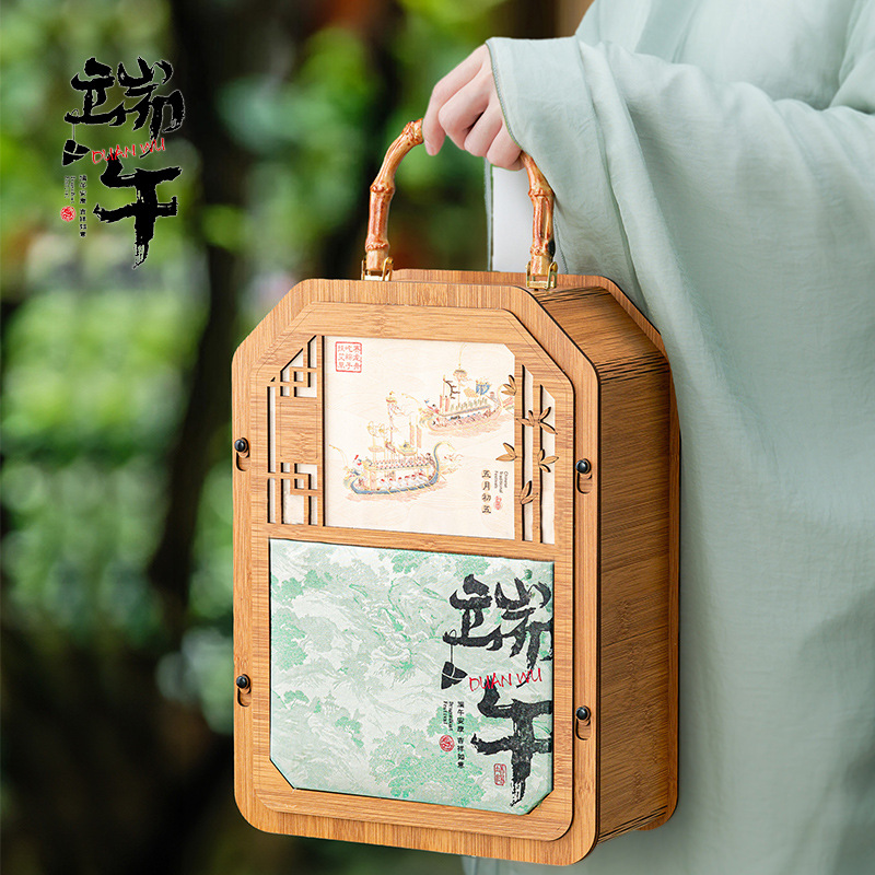 2025端午の節句の礼箱ちまきの包装箱の創意は竹のつづりの箱の手提げの贈り物の空の箱をまねてLOGOを決めます。